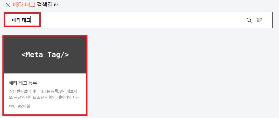 새창에서 내 티스토리 블로그를 열고 - 티스토리 관리자 -> 플러그인페이지에서 메타 태그 검색, 클릭합니다.